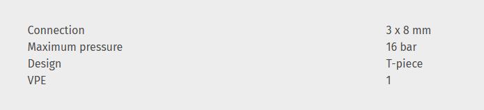 3 x 8 mm, T-piece, 16 bar