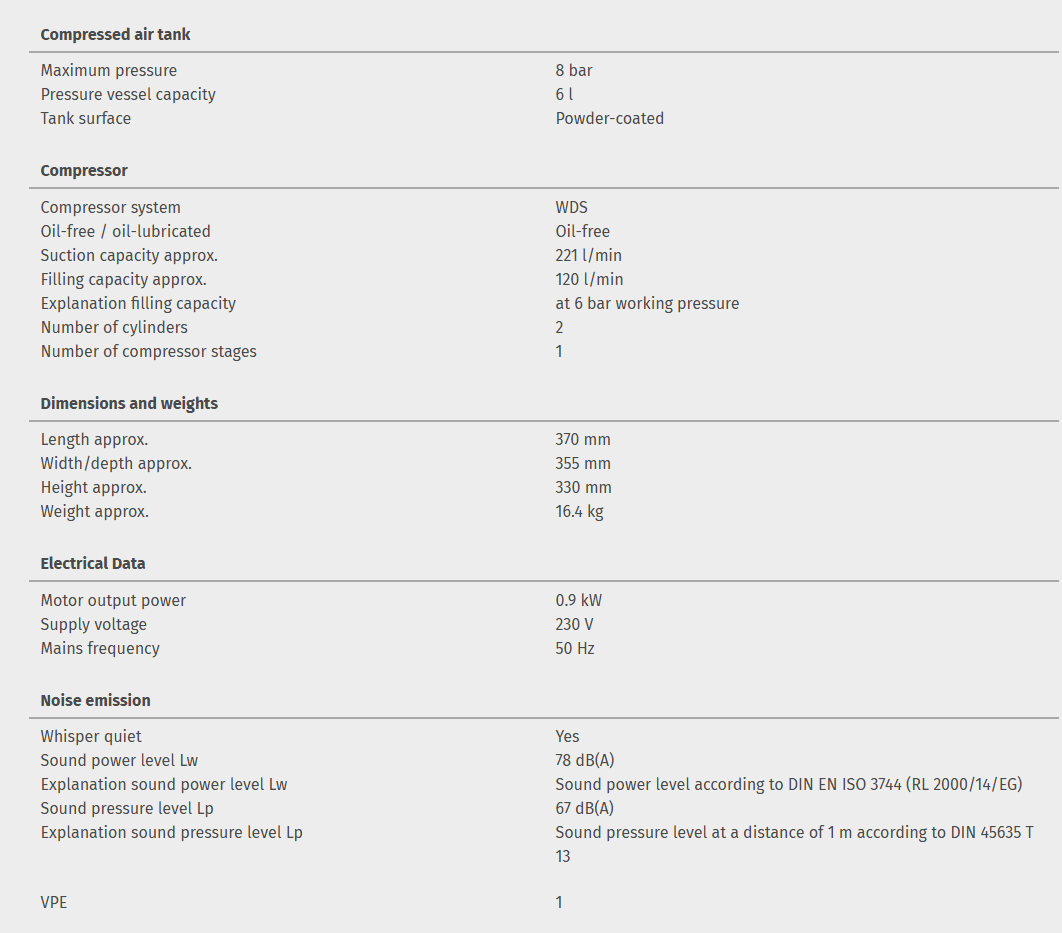 The handy oil-free compressor with 8 bar maximum pressure