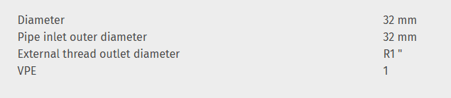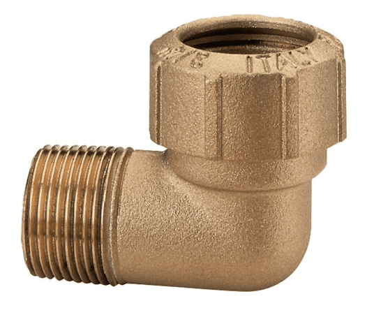 Angled screw-in connector 90° (brass) 32 mm OD / R1″ ET