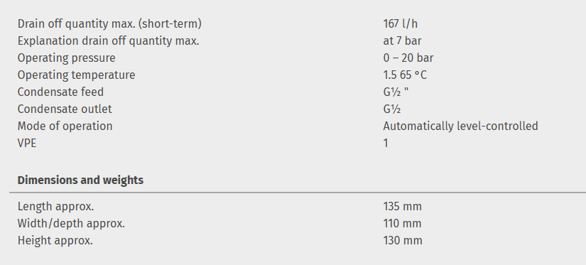 For automatic, level-controlled drainage of condensate or other non-aggressive fluids from the compressed air system