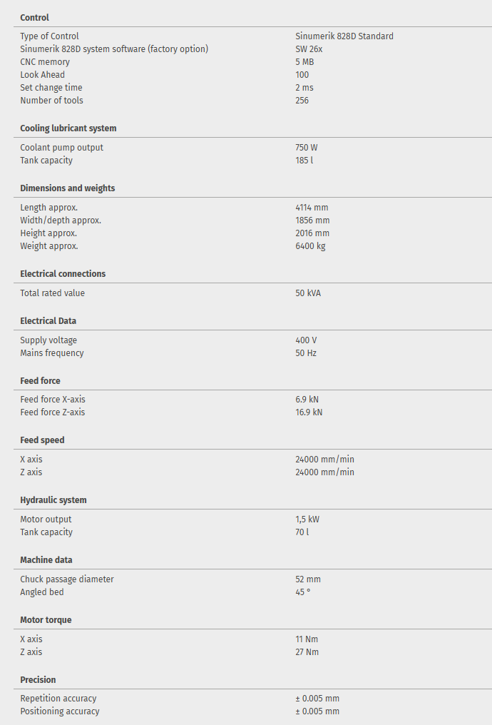 Convinces by high speeds, precision and efficiency as well as by the additional equipment like chip conveyor and C-axis. Including Siemens control 828D