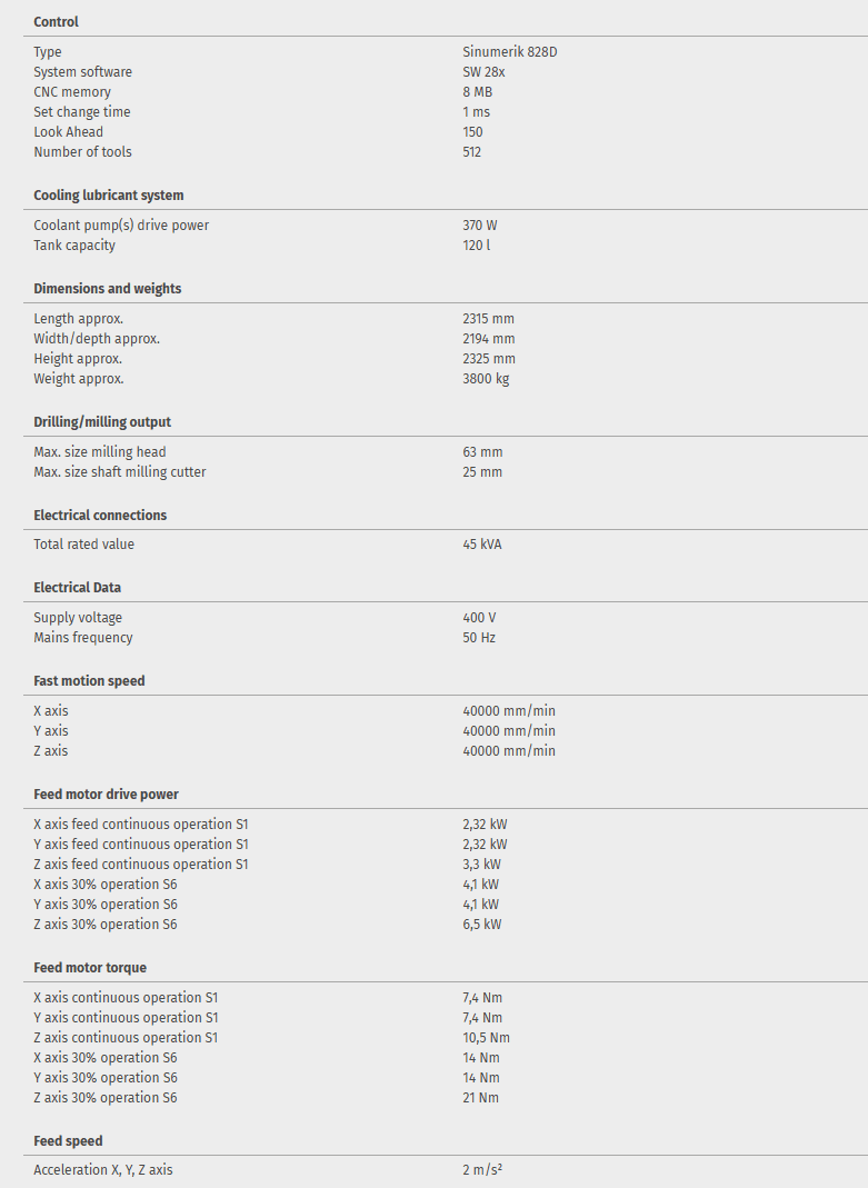 Drilling and thread tapping machine with full milling capability and SIEMENS SINUMERIK 828D.