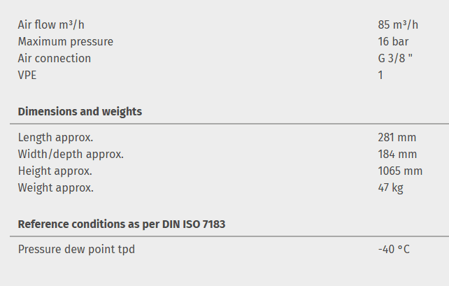 Cold regenerated adsorption dryer DRYPOINT AC 191 with pre-filter and BEKOMAT 20FM