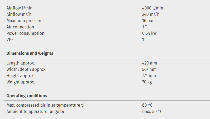 Compressed air refrigeration dryer ASD 240