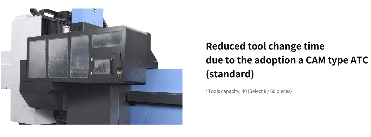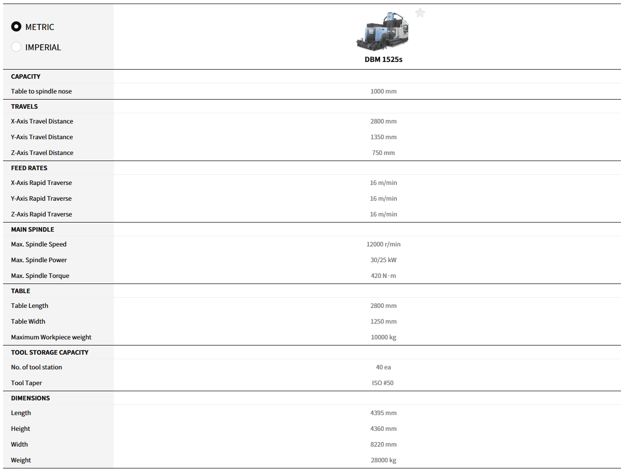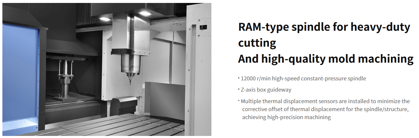 The DBM s Series is optimally designed for machining medium to large-size molds, such as automotive, injection molding machines or press molds. It is equipped with a double-column structure and a Z-axis box guideway to ensure safety and reliability.
