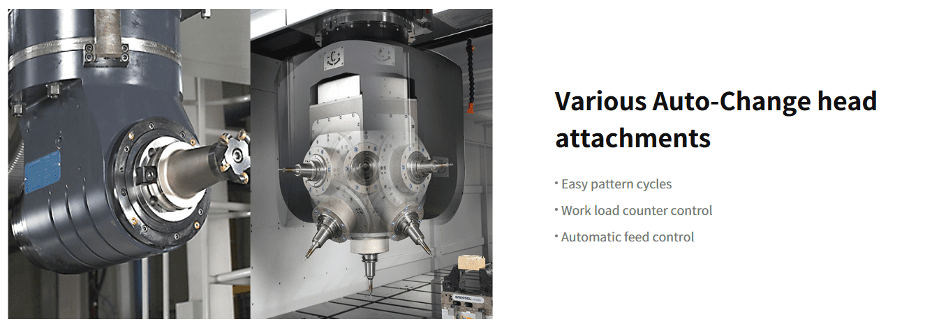The attachment of a universal head to the DCM U series of double-column machines enables 5-axis machining of workpieces of diverse shapes. The series boasts a larger machining area and stronger cutting ability than rival machines in its class, while the adoption of a U Head cooling system and rear and semi covers ensures the highest level of precision and prevent chips from scattering out of the machine and maintain a clean work environment.