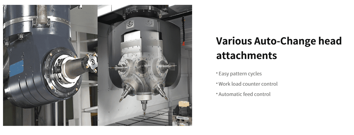 The attachment of a universal head to the DCM U series of double-column machines enables 5-axis machining of workpieces of diverse shapes. The series boasts a larger machining area and stronger cutting ability than rival machines in its class, while the adoption of a U Head cooling system and rear and semi covers ensures the highest level of precision and prevent chips from scattering out of the machine and maintain a clean work environment.