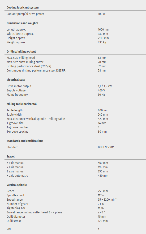 Universal drilling and milling machines with digital position indicator DRO 5 and cast iron machine base