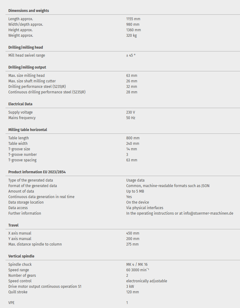 Categories: Milling machines conventional, Optimum, Sturmer