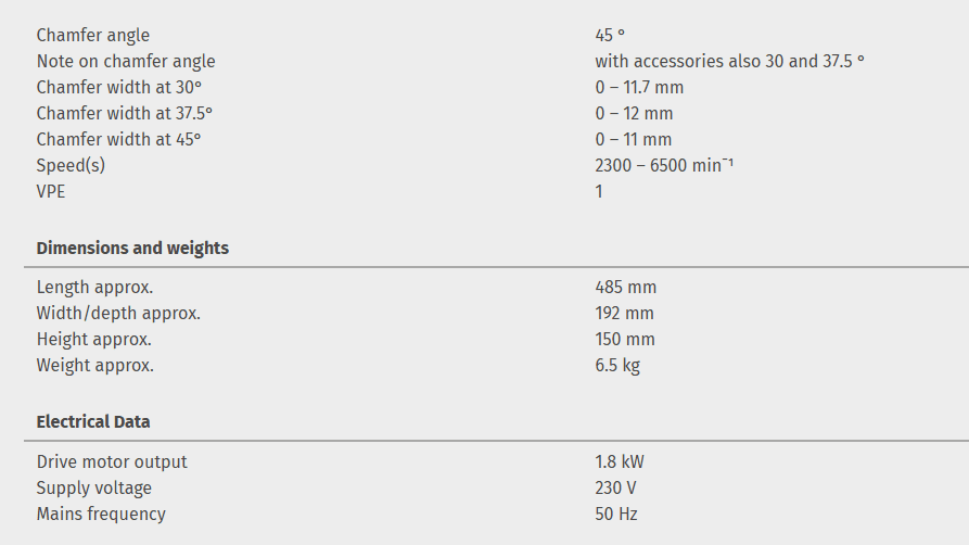 For radii, bores, inside and outside edges, up to 10.6 mm chamfer width