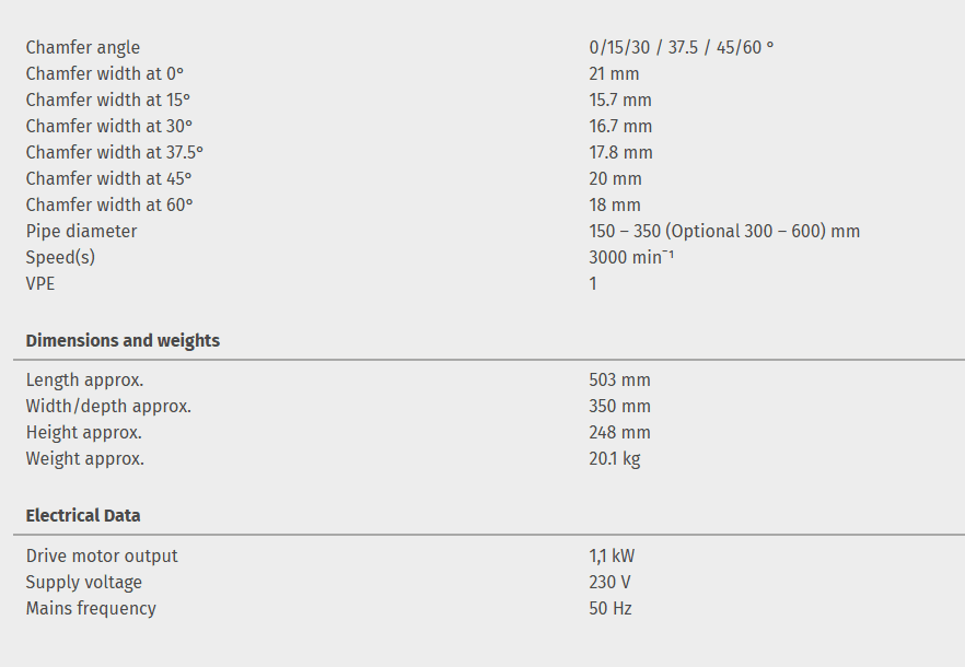 For visible edges and weld preparation with stepless angle adjustment of 15 – 60 °.