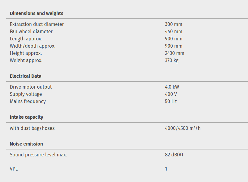 / Extraction device for metal grinding machines AS 4003 D
