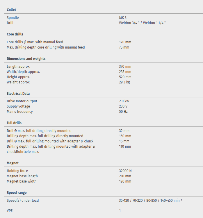 High-quality machine for versatile use. Drill large diameters economically and quickly