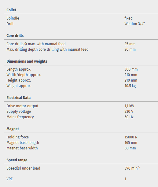 Magnetic core drill MB 351 F