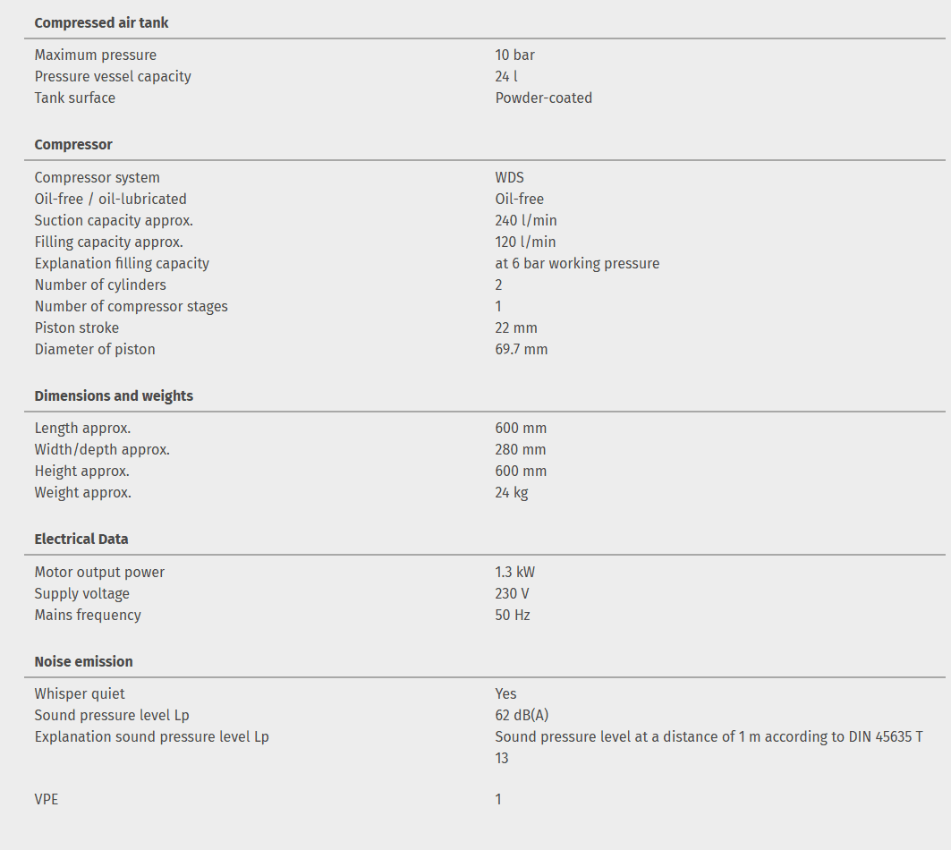 Oil-free, very quiet compressor for mobile use