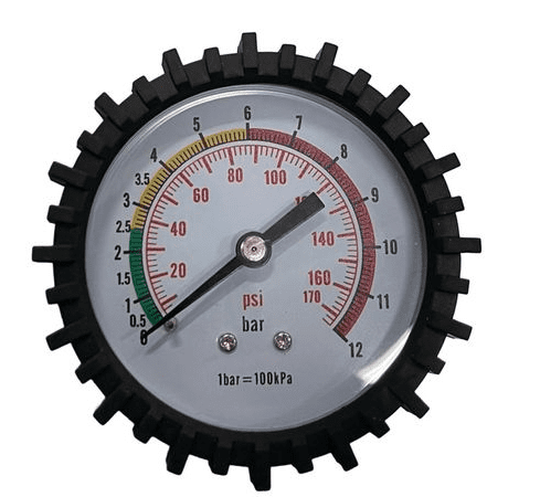 Pressure gauge for tire inflation gauge set with QUICK-LOCK torque plug nipple