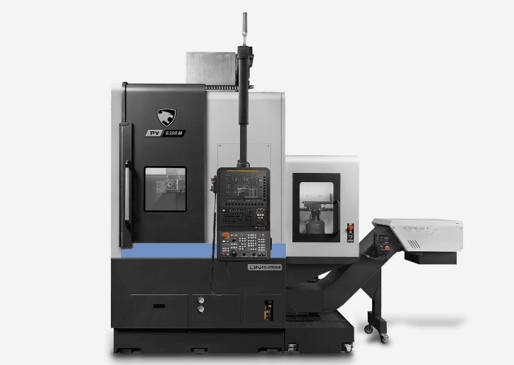 The PV6300 series is a high-productivity vertical turning center developed with DN Solutions’ latest VTC technology. It features an integrated column box guide structure and a reinforced bed frame, providing a rigid construction capable of withstanding heavy-duty cutting. With the highest machining capacity in its class, it offers customers enhanced versatility in operation.