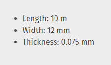 Sealing tape PTFE, 10m x 12mm x 0.075mm