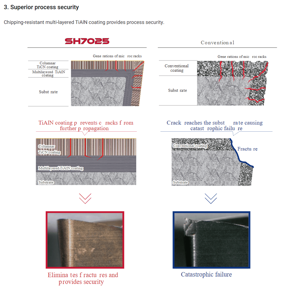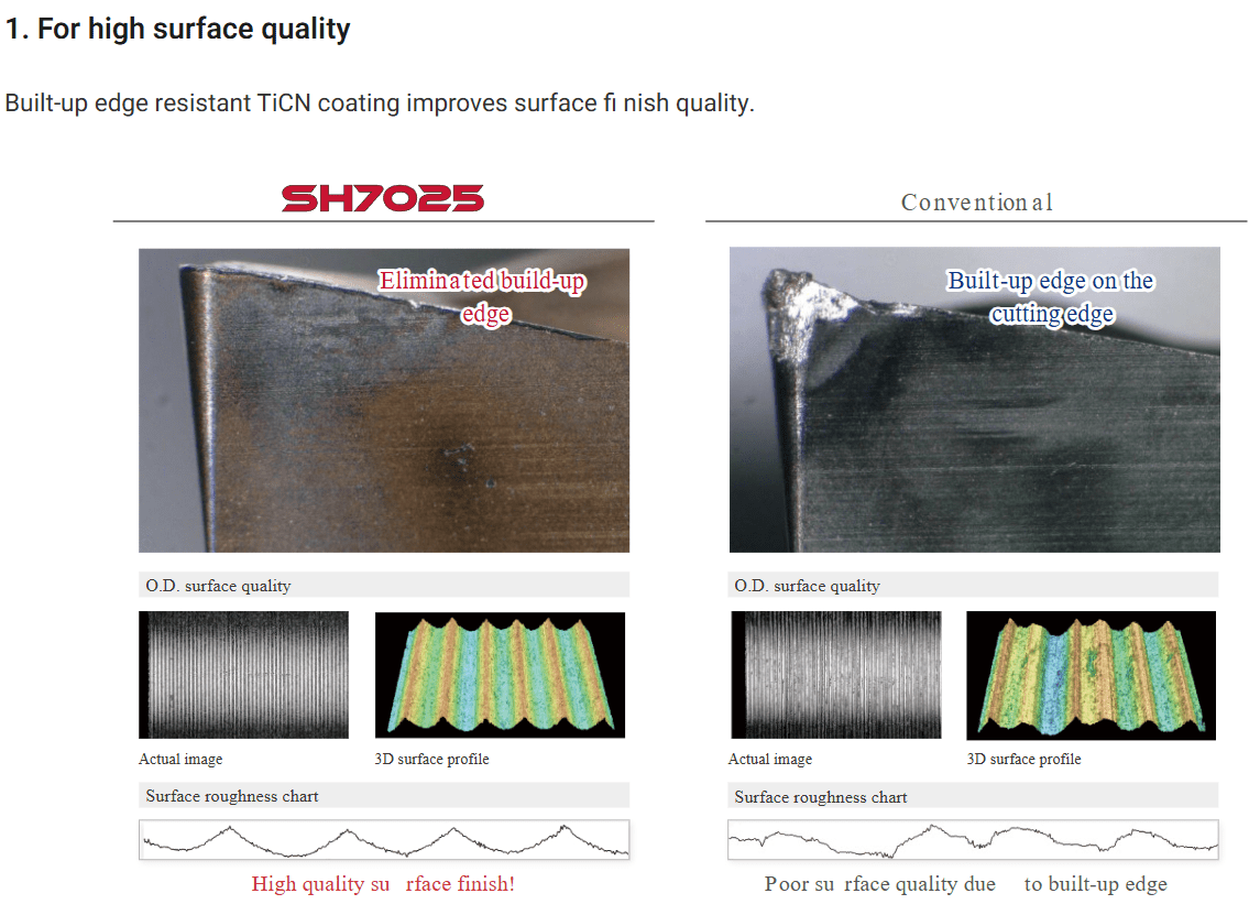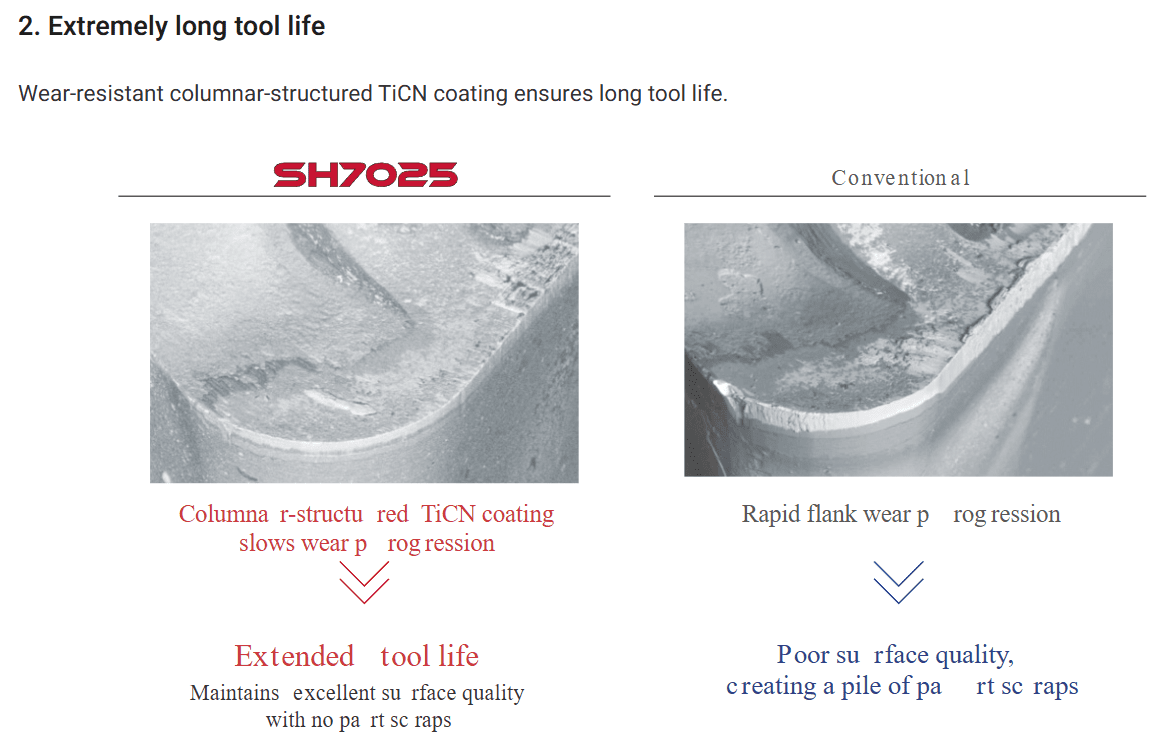 Cutting edge sharpness is maintained over a long period of time, providing light cutting and excellent surface finish
