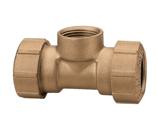 T-screw-on connector (brass) 2 x 32 mm OD, 1 x G1″ IT