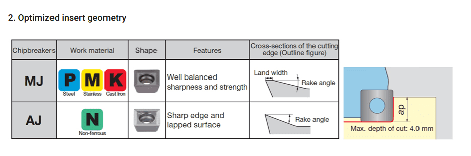 Small-diameter, extra close-pitch cutter body is highly rigid and provides excellent chip evacuation. Positive insert with 4 cutting-edge delivers economical advantage