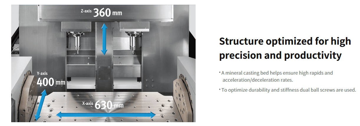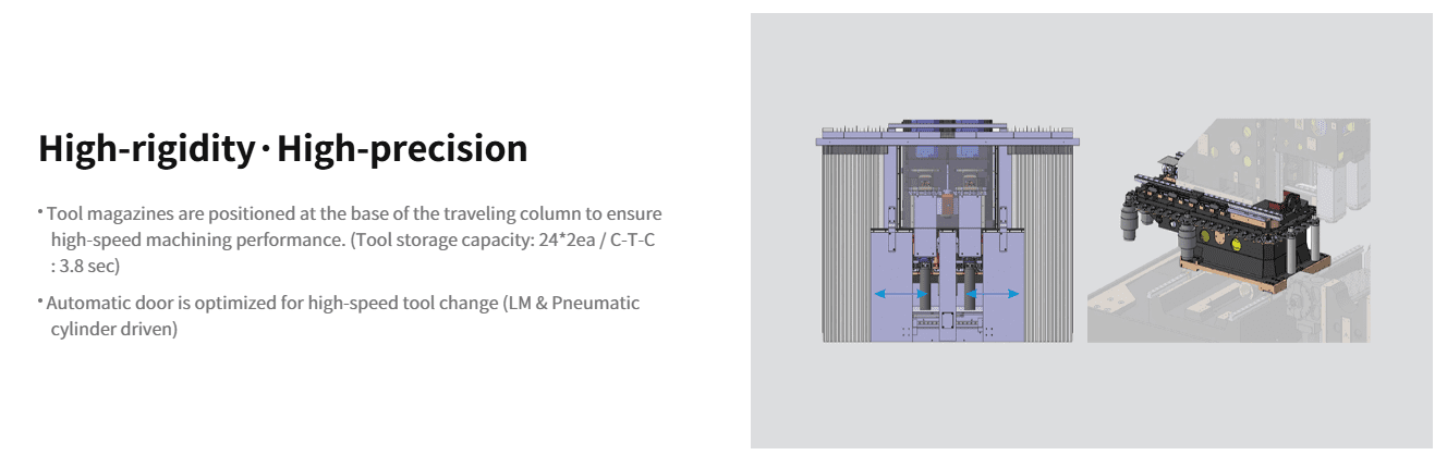 High-productivity, twin-spindle moving column VMC